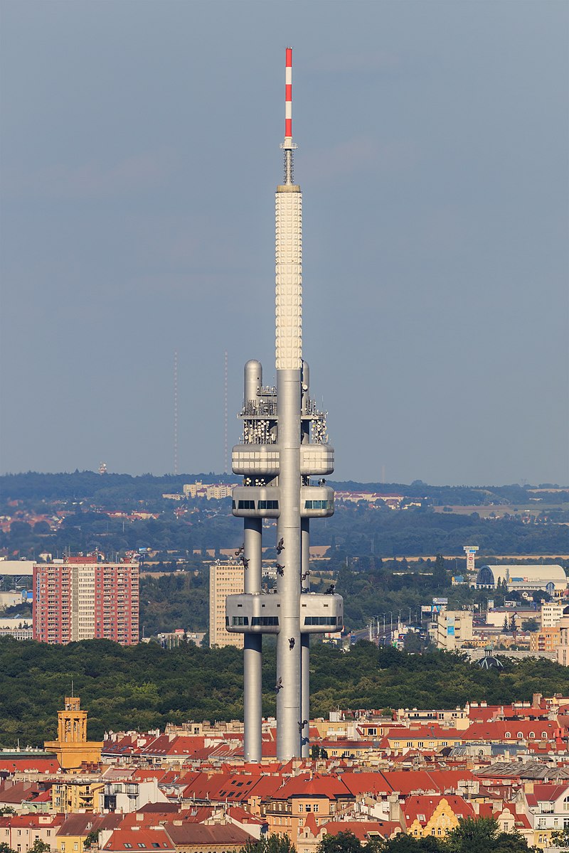 Žižkovský vysílač vznikal v letech 1985 až 1992 podle návrhu architekta Aulického a statika Jiřího Kozáka a Alexe Béma. Podle některých zahraničních serverů patří 216 metrů vysoká věž mezi nejošklivější stavby světa. Vysílač stojí v Mahlerových sadech na rozhraní Žižkova a Vinohrad na místě starého židovského hřbitova. Konstrukce se skládá ze tří ocelových tubusů, které nesou celkem devět kabin. V nejvyšším patře je umístěna vysílací technika. Celá stavba má hmotnost 12.000 tun.