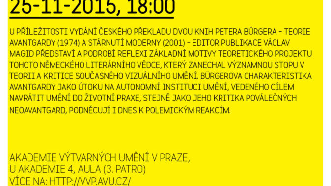 U příležitosti vydání českého překladu dvou knih Petera Bürgera – Teorie avantgardy (1974) a Stárnutí moderny