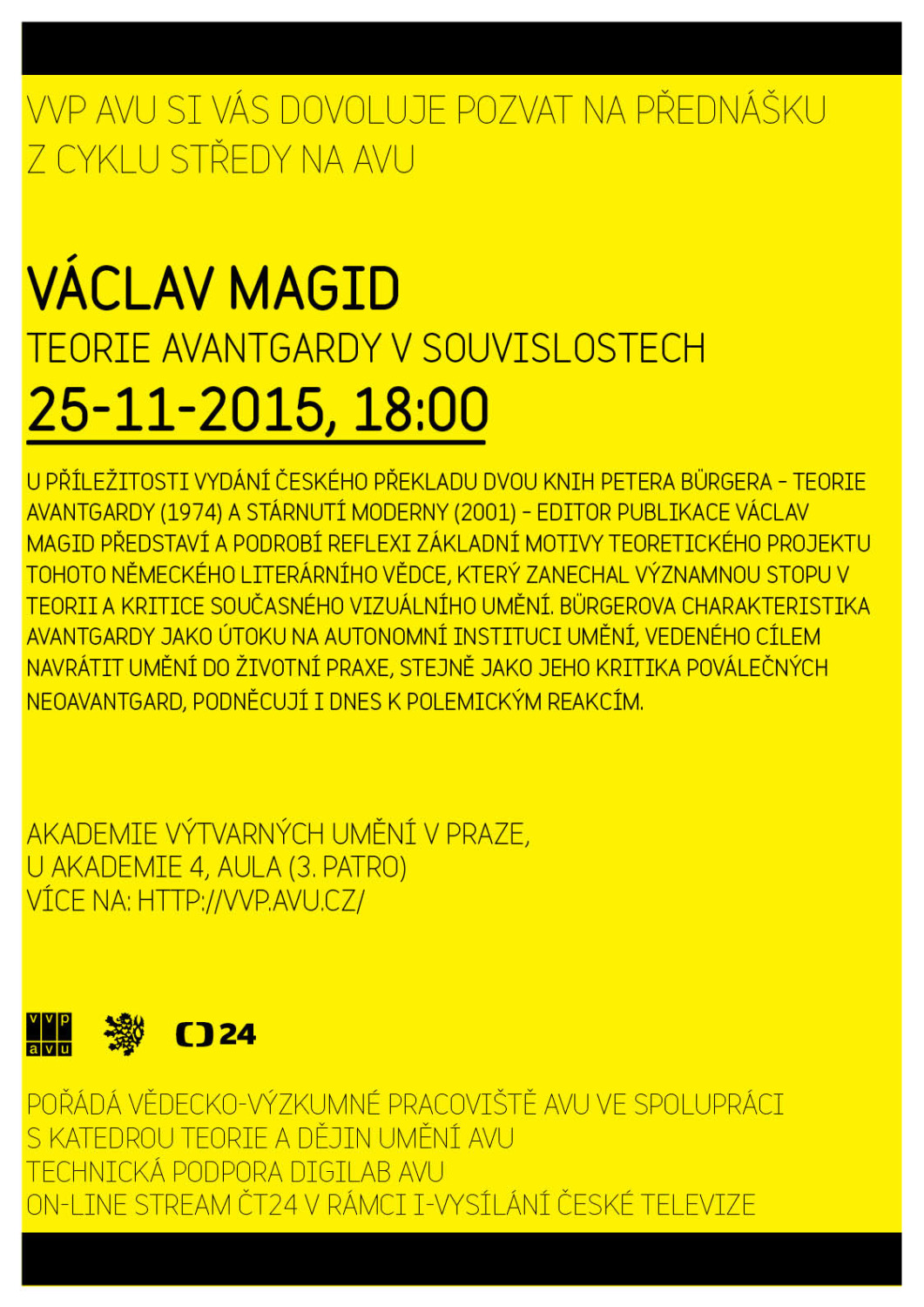 Pořádá Vědecko-výzkumné pracoviště AVU ve spolupráci s Katedrou teorie a dějin umění AVU