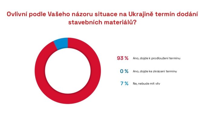 Okolnost, která stavebnictví trápí již od počátku pandemie, je prodlužování termínu dodávek stavebních materiálů. Vzhledem k tomu, že mnohé klíčové stavební materiály, jako například železo, pochází z velké části z Ukrajiny, je logické, že dojde na trhu k prohloubení nedostatku materiálu. S tímto tvrzením souhlasí na 93 % dotázaných stavebních společností.