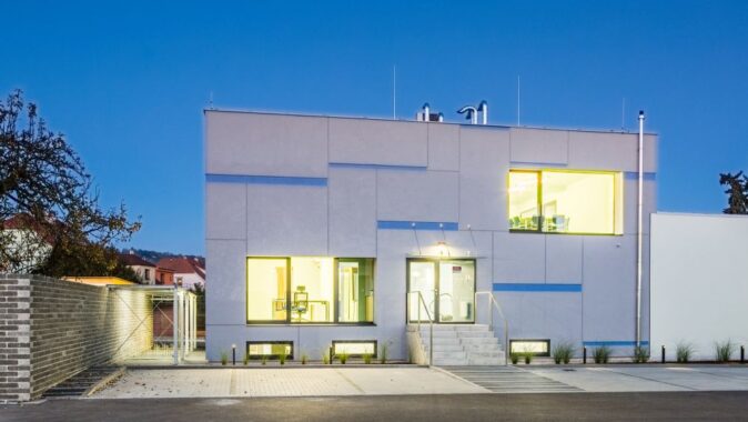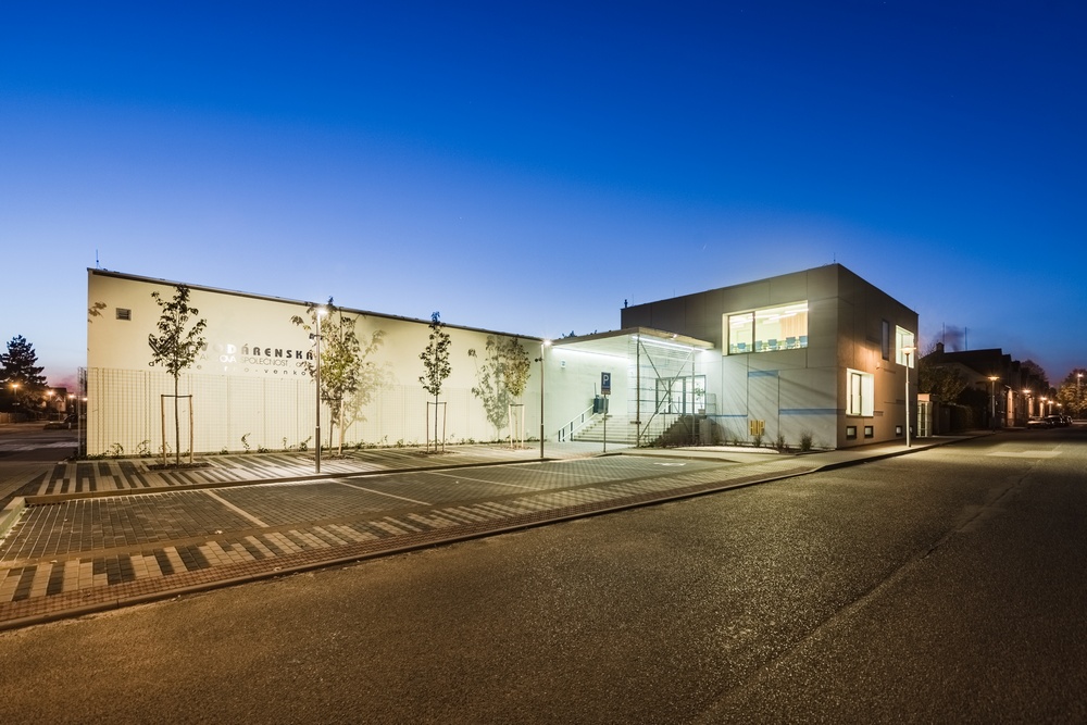 Stávající budovy jsme doplnili novými tak, aby vznikl urbanistický tvar uzavřeného areálu po vzoru venkovských statků. Před hlavní vstup do objektu jsme navrhli malé náměstí s parkovištěm a řadou stromů.