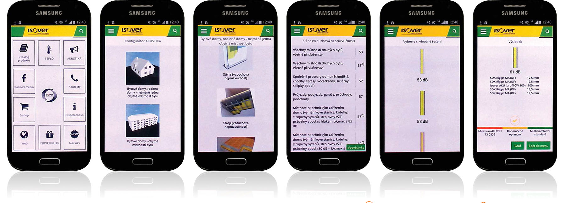 Jak svou budoucí příčku otestovat? Akustické chování různých typů vnitřních příček je přehledně zpracováno například v aplikaci Isover SmartAPP. Aplikace je určena nejen pro profesionální stavaře, ale i pro běžné stavebníky. Díky ní lze během chvilky zjistit laboratorní vzduchovou neprůzvučnost navržené příčky a také získat velmi důležité srovnání, tedy zda není za podobné (nebo dokonce stejné) peníze k dispozici příčka akusticky výrazně účinnější. Každý tak má možnost velmi rychle zjistit, zda je navržen základní standard, nebo něco akusticky kvalitnějšího pro komfort vyšší.