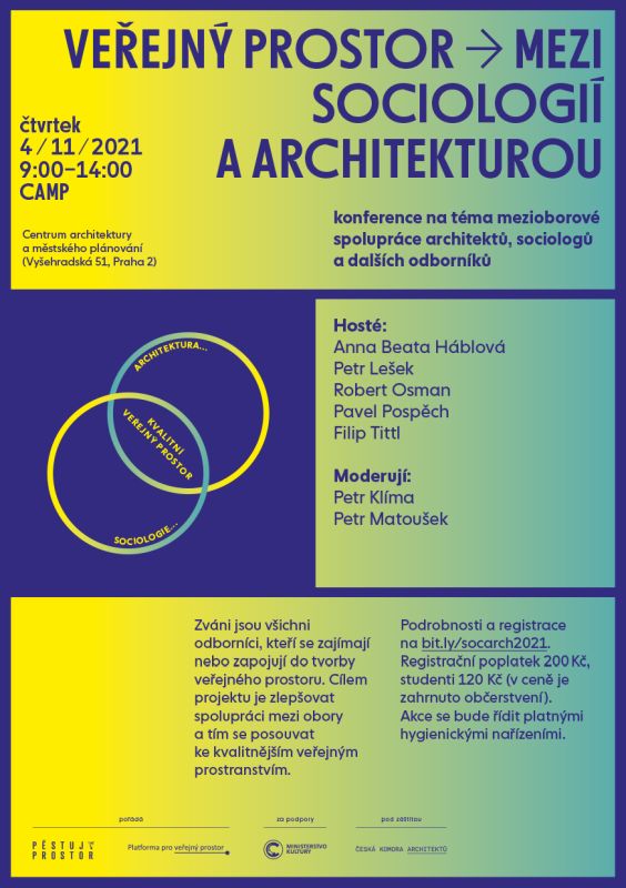 Konference se bude těmto tématům věnovat více do hloubky a prostřednictvím diskuze hledat možnosti zlepšení stávající situace. „Hosty panelové diskuze budou sociolog Pavel Pospěch, sociální geograf Robert Osman, teoretička architektury Anna Beata Háblová a praktikující architekti Petr Lešek (Projektil architekti) a Filip Tittl (UNIT architekti). Ke slovu se ale dostanou i návštěvníci konference. Zváni jsou všichni odborníci, kteří se zajímají nebo zapojují do tvorby veřejného prostor,“ doplňuje organizátor konference architekt Marek Sivák ze spolku Pěstuj prostor, který je též součástí Platformy pro veřejný prostor.