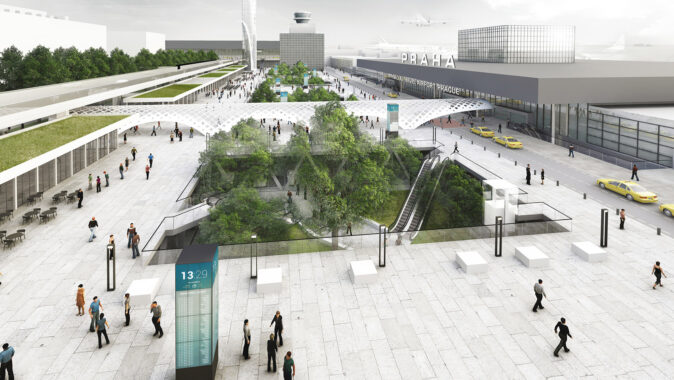 koncept venkovních prostor Letiště Václava Havla počítá se zlepšením dopravy i