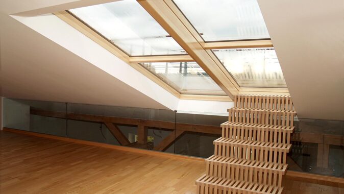 Střešní dveře Solara jsou konstruované pro běžný sklon a šířku schodišťového