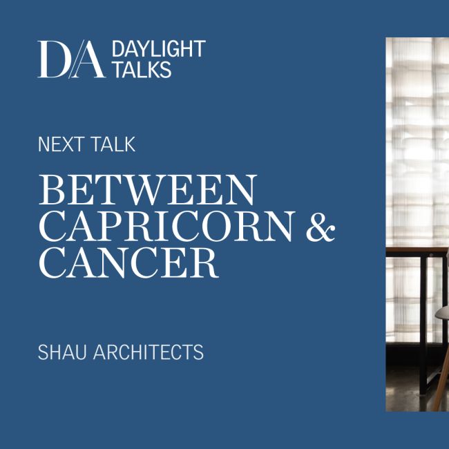 Na předchozí přednášky se můžete podívat na odkazu daylightandarchitecture.com, včetně té zatím poslední ‘Between Capricorn & Cancer’ by SHAU Architects