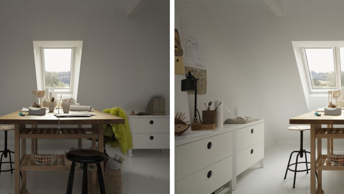 VELUX STUDIO je ideální pro obytné místnosti, jako jsou kuchyně nebo obývací