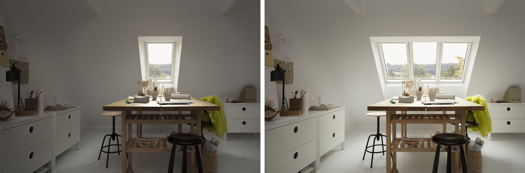VELUX STUDIO je ideální pro obytné místnosti, jako jsou kuchyně nebo obývací