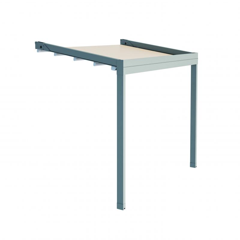 Montáže sestavy dvou hliníkových pergol se ujala Proklima, přední česká firma zabývající se instalací stínicích systémů již více než 12 let. Technici zvolili speciální kotvení do betonových patek a pomocí nerezových tlumičů do provětrávané cihlové fasády. Dodatečně také instalovali velmi důmyslně řešený odvod dešťové vody předními stojinami do systému kanalizace celého domu. Vzhledem k různému výsuvu dvou sousedních pergol museli také sladit stejné vzdálenosti vodorovných profilů. Pro spojení pergol využili atypické provedení středové vodicí lišty pro různé délky výsuvu.