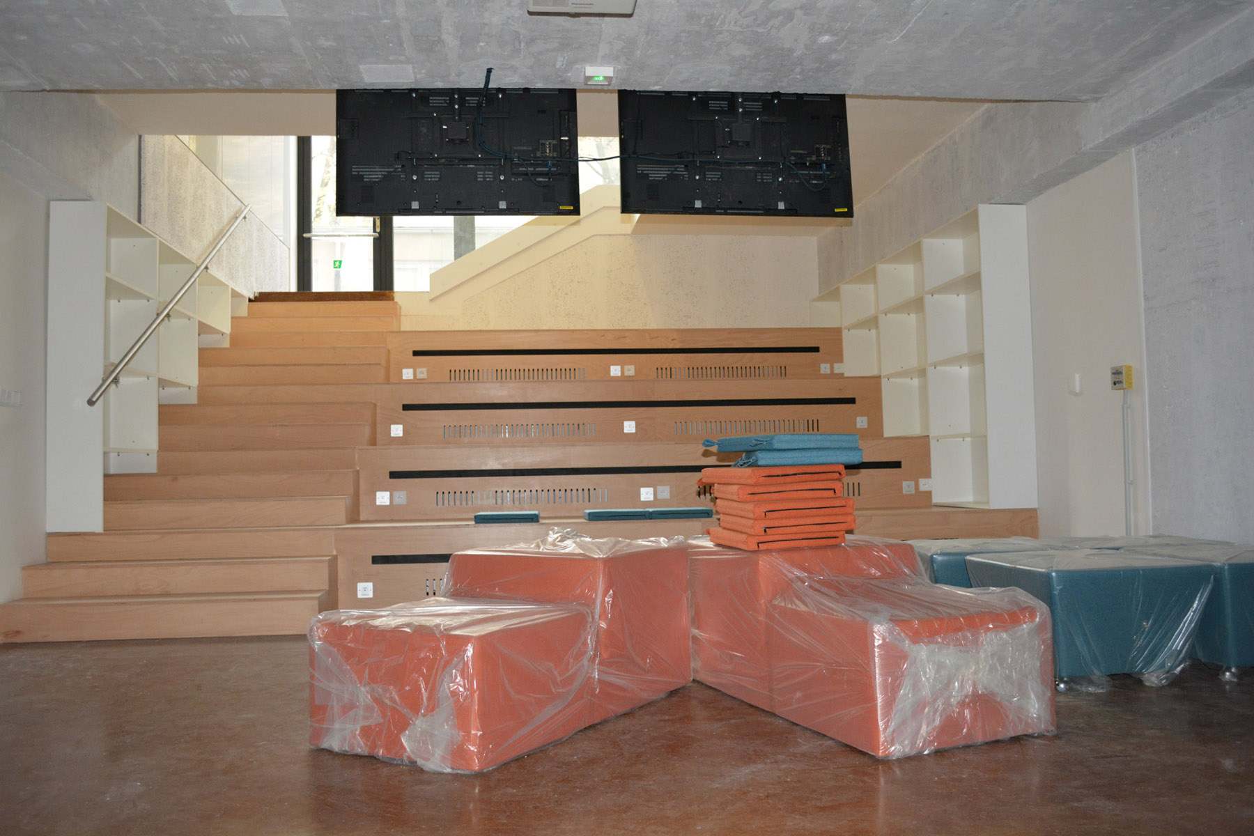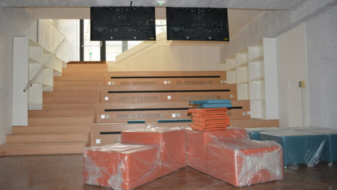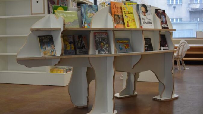 Knihovna v přízemí nabídne návštěvníkům kromě zmíněného pohodlného sezení cca 14.000 svazků knih, výběr denního tisku a časopisů, studijní/čtecí koutek nebo internet v pevné i bezdrátové podobě. Chybět nebude ani dětské oddělení s knihovnou – ledním medvědem a stropem oživeným světly v podobě pestrobarevných balónků. A možná přijede i ta tramvaj…