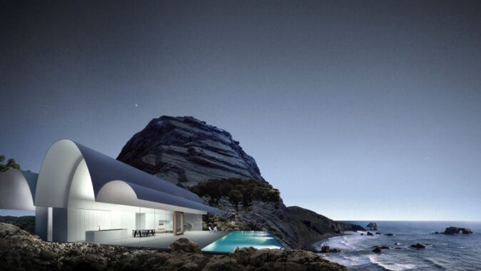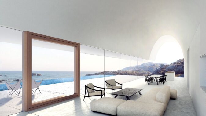 na oceán. Navržená koncepce stírá rozdíl mezi interiérem a exteriérem a vytváří