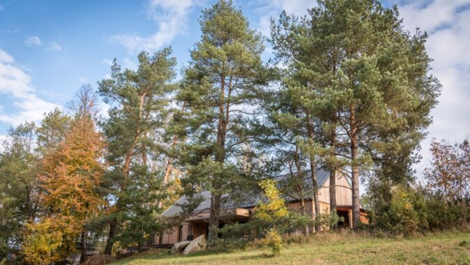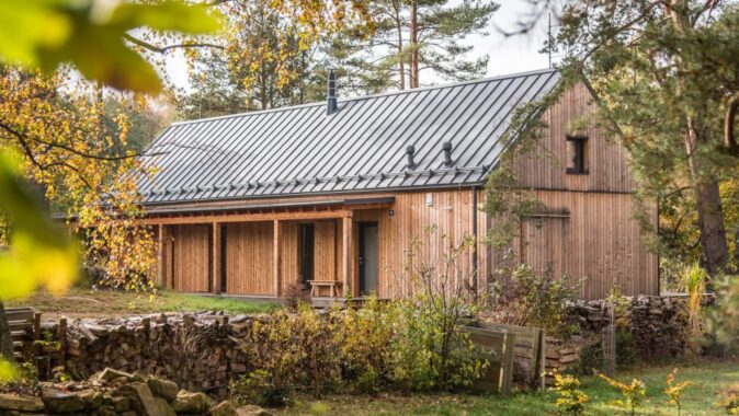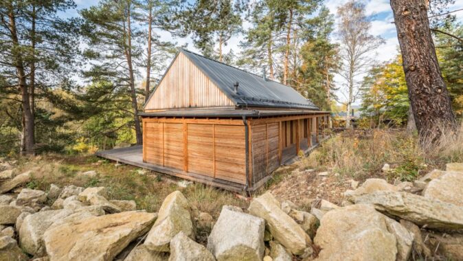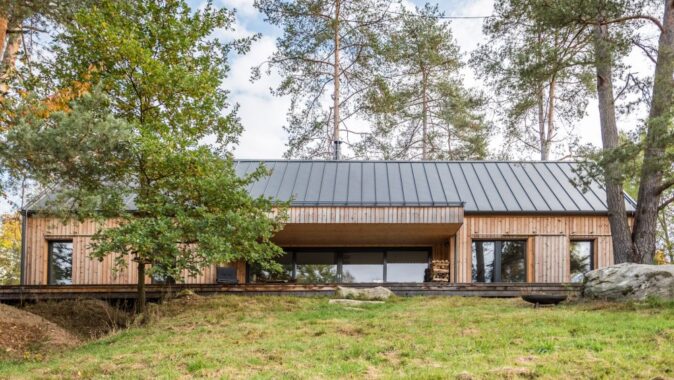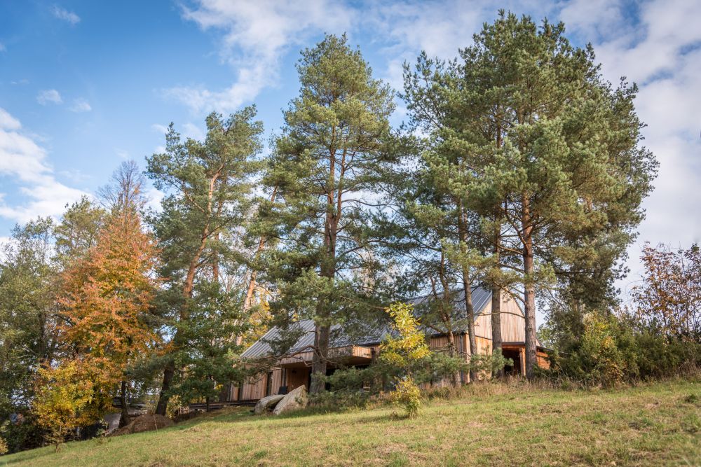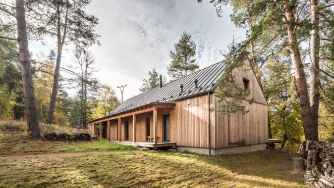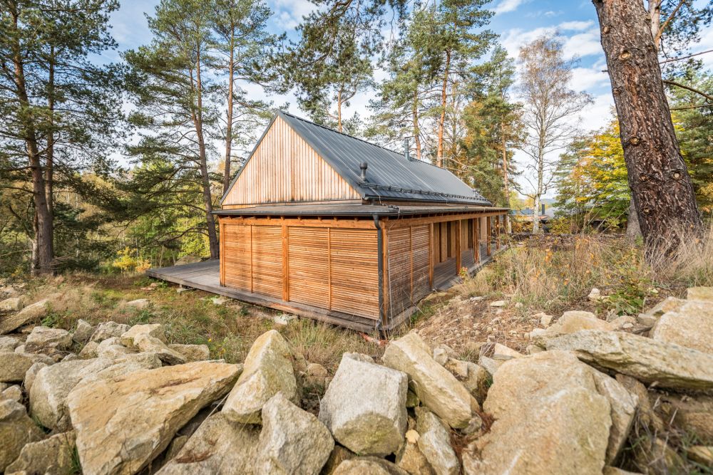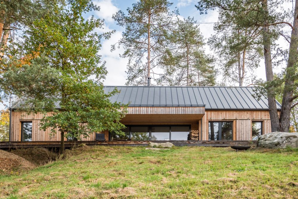 Představte si údolí, v něm potok obklopený borovicovým lesem. Nahoře nad svahem palouk, kde voní jehličí a když se chcete posadit na zem, dáváte si pozor, abyste si neumazali kraťasy od borůvek. Místo, kam se chcete pravidelně vracet, abyste si vyčistili hlavu od městského shonu; místo, kde budete sami, respektive kde budete sousedi veverek, srnek a místního ptactva. Jedno takové našel pan Bernau v Jižních Čechách kousek od Nové Bystřice v oblasti české Kanady, na kraji malé vesnice. Přišel za námi, že by tu chtěl postavit víkendový srub s malou garáží, kam by mohl zaparkovat motorku a případně motorky kamarádů, kteří ho přijedou navštívit a zahrají si s ním golf na nedalekém golfovém hřišti.