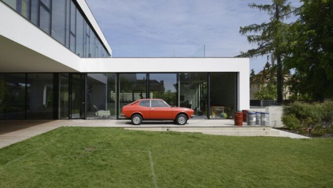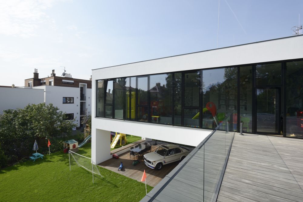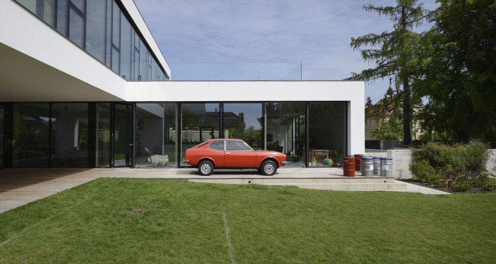 náplně, kterou se kromě rodiny stala auta. Rozlehlé přízemí připomíná autosalon