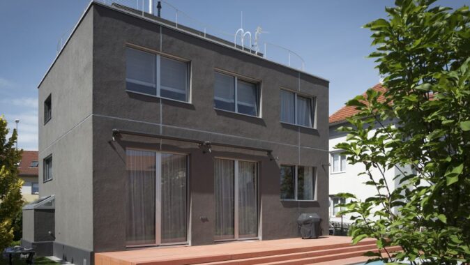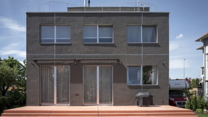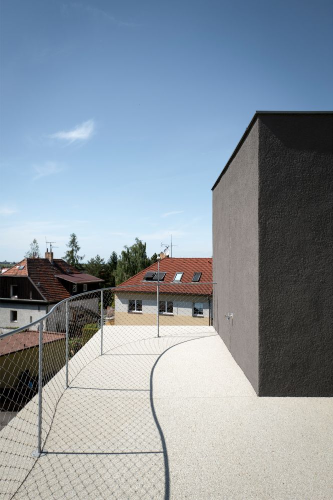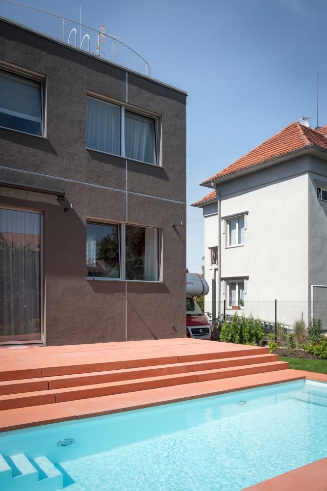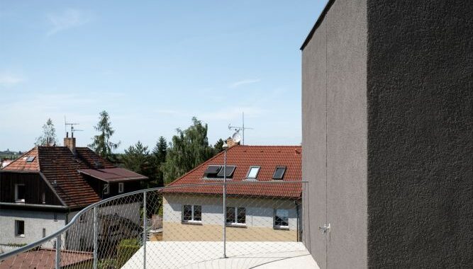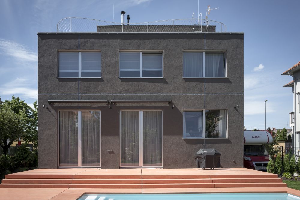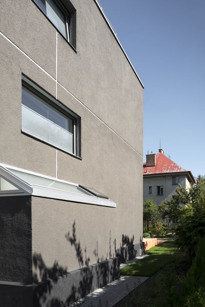 Dům se nachází ve vilové části Prahy 6, jedná se o náhradu původní, jen obtížně rekonstruovatelné stavby. Pozemek je poměrně malý, z čehož vyplývá výrazné vertikální prostorové dělení novostavby. Dispozice se postupně odvíjejí okolo komfortního točitého schodiště, které je zrcadlem bohatě prosvětleno shora. Jednotlivé prostory do sebe zapadají jako prostorový tetris, aby složily hranolovou formu domu.