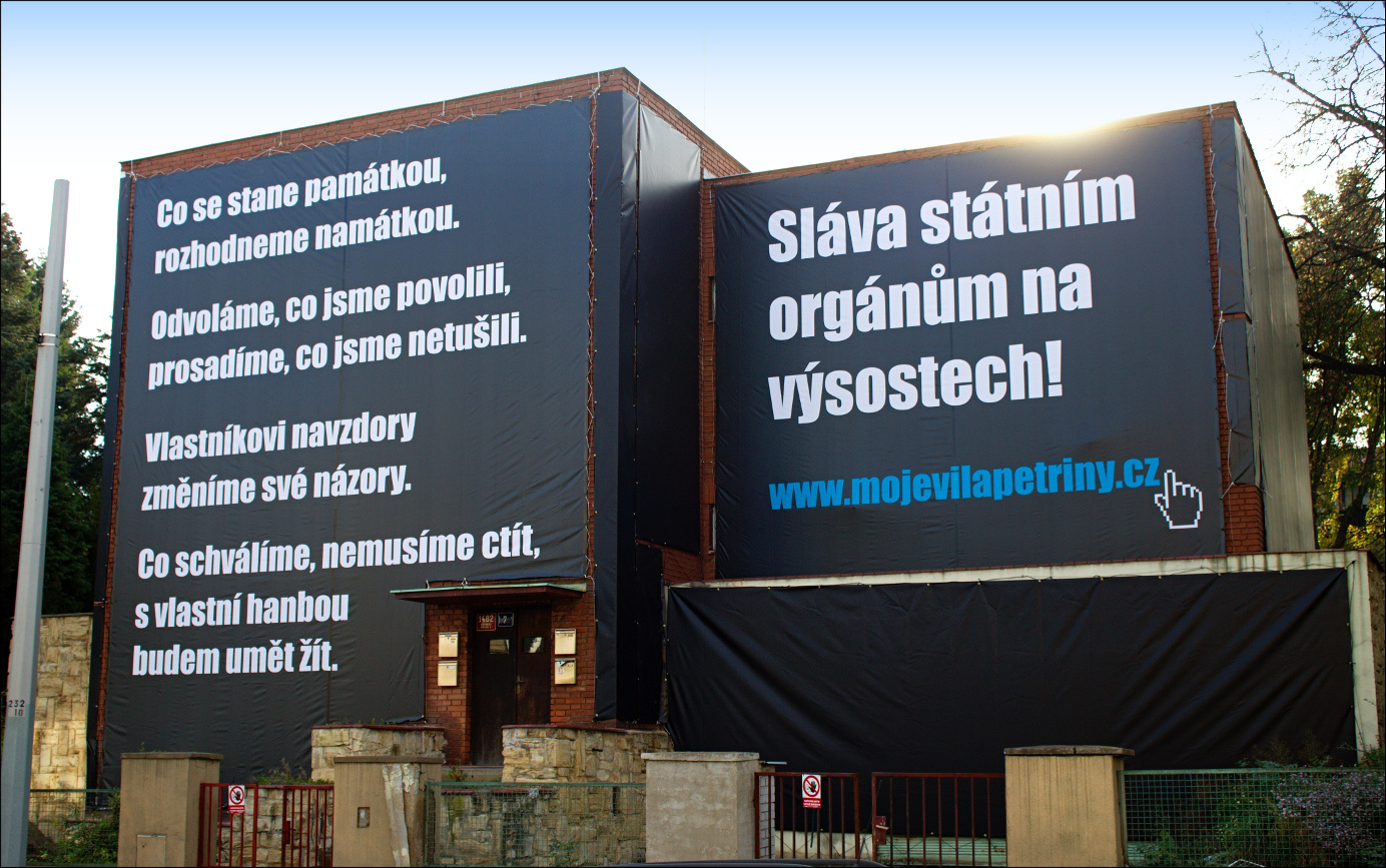 Podle magistrátu zahalením domu poškodil vilu a porušil zákon o