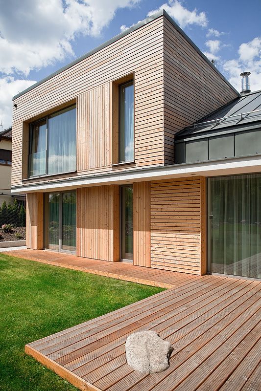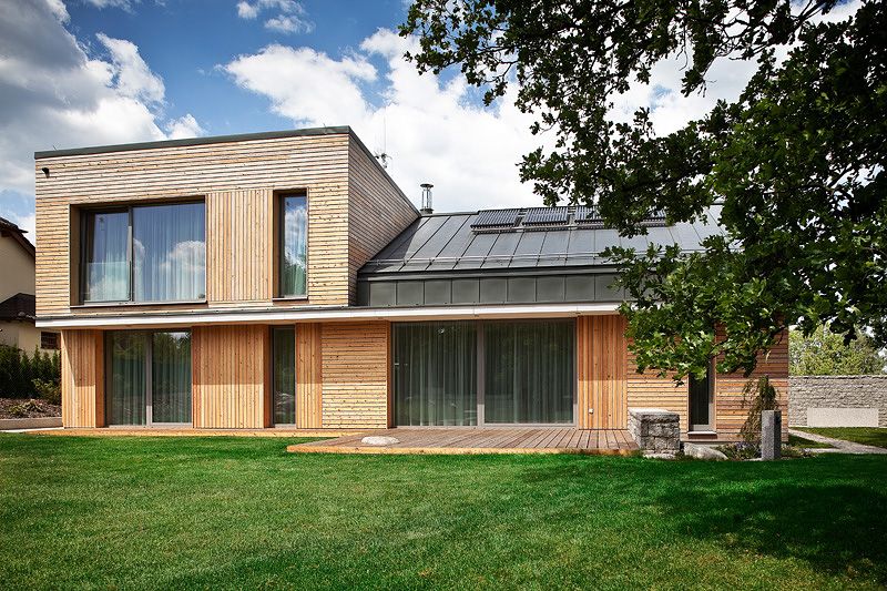 Na výstavbu obytného souboru byl zpracován regulační plán, který stanovil uliční čáru předsunuté garáže a zasunuté hlavní části domu, odstupové vzdálenosti od sousedních hranic a od lesního porostu. Po přenesení regulačních podmínek na parcelu zůstala z pozemku zastavitelná plocha sotva pro dům. Nastavené limity tak určily nejen umístění stavby, ale daly jí i základní půdorysný tvar.