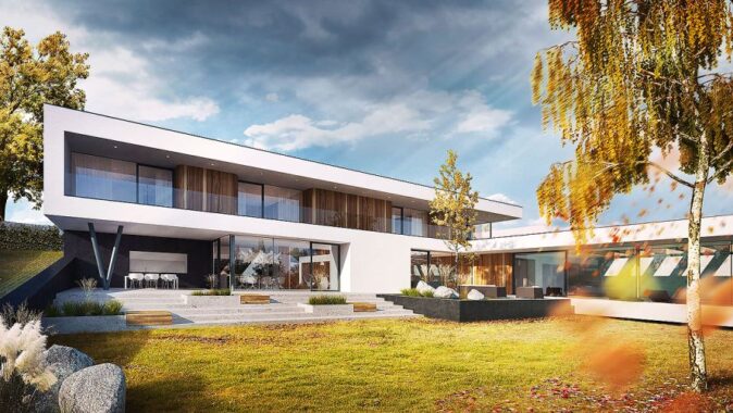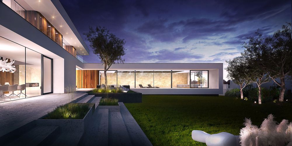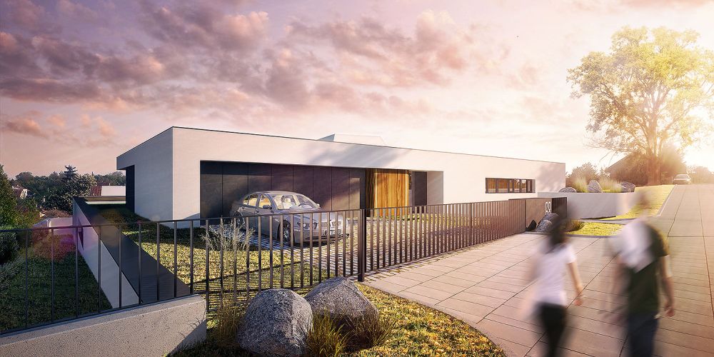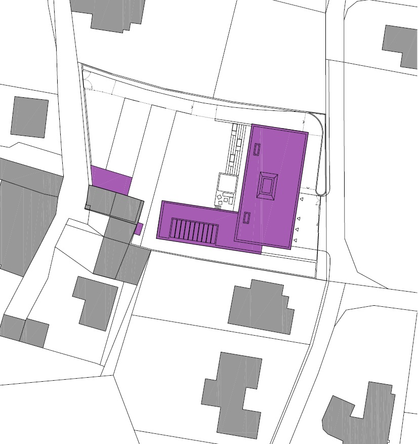 Koncept domu byl už od počátku navrhovaný v souladu s rozsáhlým svažitým pozemkem. Při pohledu do ulice je dům malý a nenápadný, jeho hlavní forma se otevírá do zahrady a k výhledům do údolí. Umístění domu na pozemku využívá jeho svažitého charakteru.