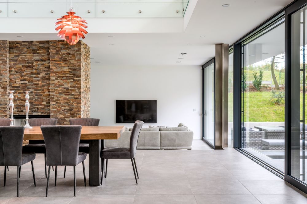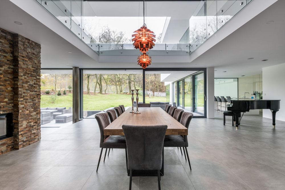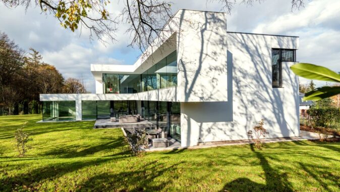 Velkorysá vila navazuje na tradici funkcionalismu, zároveň respektuje okolní přírodu, zjevné je důmyslné propojení exteriéru a interiéru.