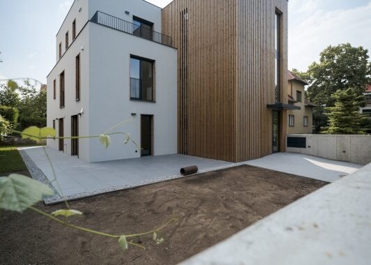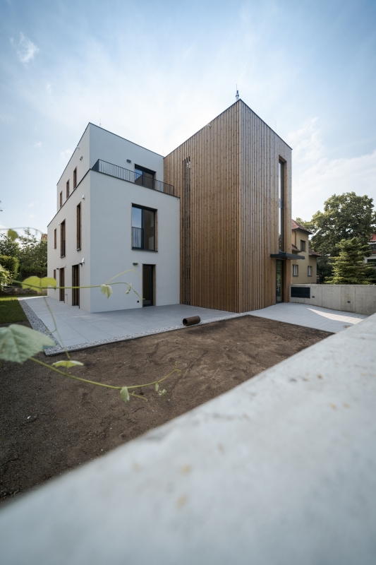 s pěti bytovými jednotkami byl realizován na samém okraji Prahy. I přes