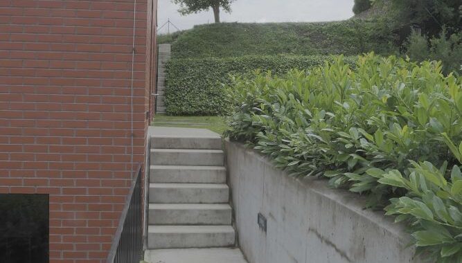 vyvýšený o 4 – 6 m nad zbývající část parcely.