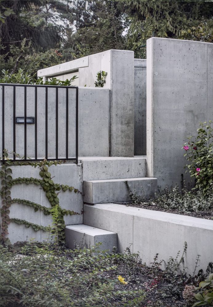 Rodinný dům je jednoduchého kvádrového tvaru z části zapuštěný do terénu. Má jedno podzemní a dvě nadzemní podlaží. Z východní strany je k suterénu připojena podzemní garáž, která tvoří samostatný dilatační celek. Dům svým objemem a architektonickým ztvárněním odpovídá okolní zástavbě a plasticitě terénu. Je 6,75 m široký a 15 m dlouhý a je umístěn kolmo k ulici. Do zeleně je osazen bez větších zadlážděných ploch. Stavba slouží bydlení 1 rodiny a parkování dvou automobilů.