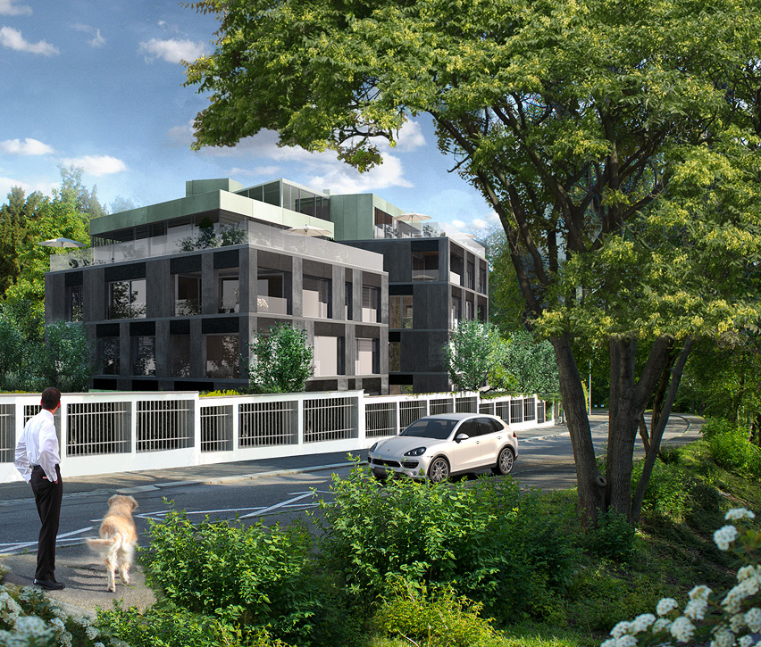 terasy a balkony se otevírají do protějšího parku a sousedních zahrad. V