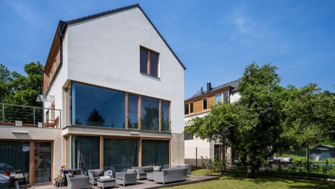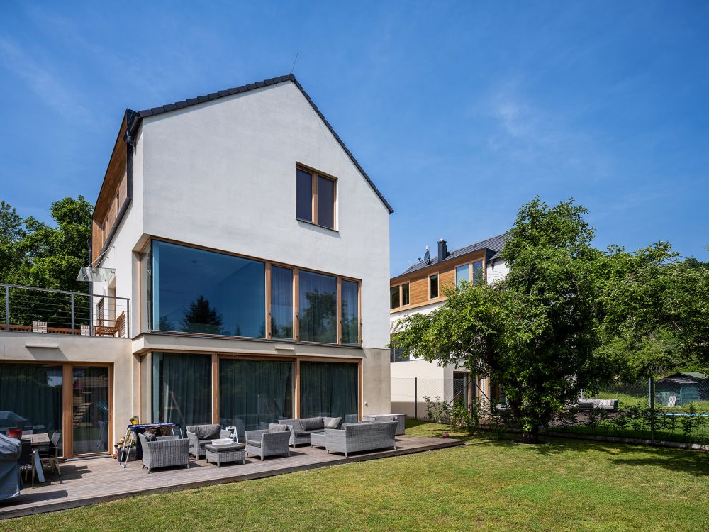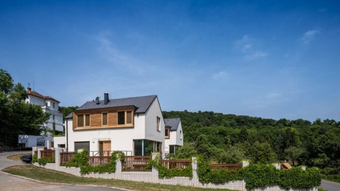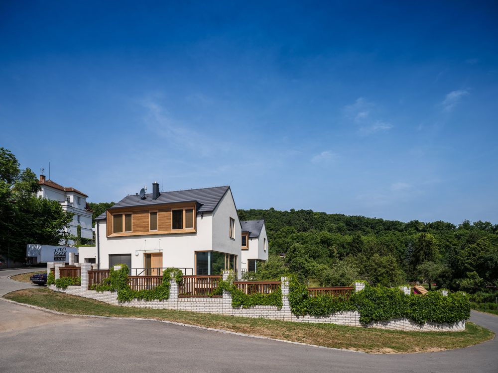 Zde uvedený vily jsou, podle mě, naprosto klasickým příkladem výstavby, kdy nás něco a někdo (patrně místní regulativ, doufám, že to nebyl jen nedostatek kuráže) donutí tvořit hmotu tradičního domu se sedlovou střechou, ale my tím jenom maskujeme zcela moderní design, kterému by mnohem víc slušela střecha plochá a přiznání tý modernosti naplno. Vznikne často (ne vždy, jsou i na tomto poli zdařilý realizace) neskutečnej kočkopes, kterej svou neschopnost se rozhodnout, co je vlastně za zvíře, křičí do světa už zdálky. Divný…