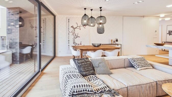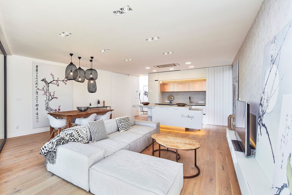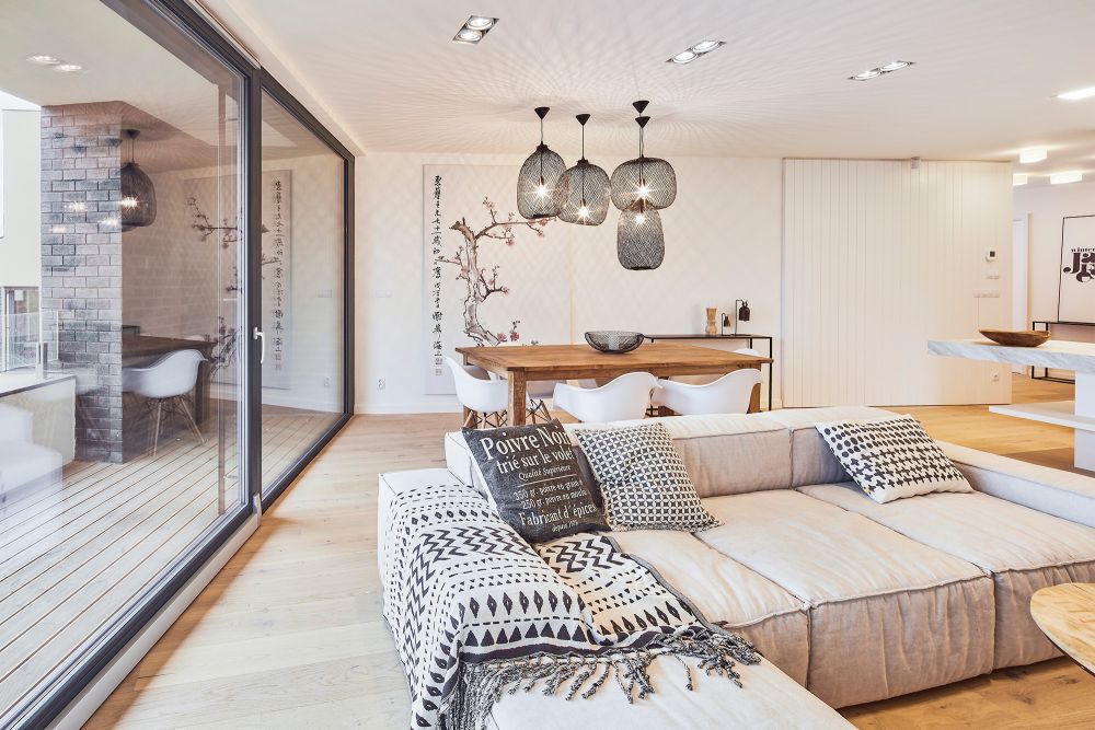 Naším prvním společným projektem s tímto klientem bylo bydlení v Modřanech. Jednalo se o rodinný dům, jehož hlavním mottem bylo propojení bydlení se zahradou, de facto byt na zahradě, a tomu jsme podřídili všechno. Velmi se to povedlo, cítili jsme proto chuť pokračovat spolu dále. Tentokrát šlo o to vytvořit pro bydlení ve městě co nejlepší možné místo. Takový byt útočiště, když chcete být chvilku sami nebo máte večerní program v centru a chcete ve městě zůstat přes noc. Je to proto trochu jiný příklad bydlení, v bytovém domě Barrandovské zahrady – městské bydlení s krásným výhledem na řeku, s velkou designovou zahradou ve svahu na skále. Velkými okny se otevírá přes den slunci, v noci vybízí k posezení na terase s výhledem na řeku světel a panorama noční metropole. Byt je příjemně velký, se třemi ložnicemi, dvěma koupelnami a obývacím pokojem s terasou. Protože všichni rádi a hodně cestujeme, touláme se po světě, cítili jsme potřebu zachytit útržky vzpomínek z cest, záblesky atmosfér, krajin a kultur, kde jsme byli a které nás baví, zkrátka naladit bydlení ještě více cestovatelsky. Ostatně to je i naše životní inspirace.
