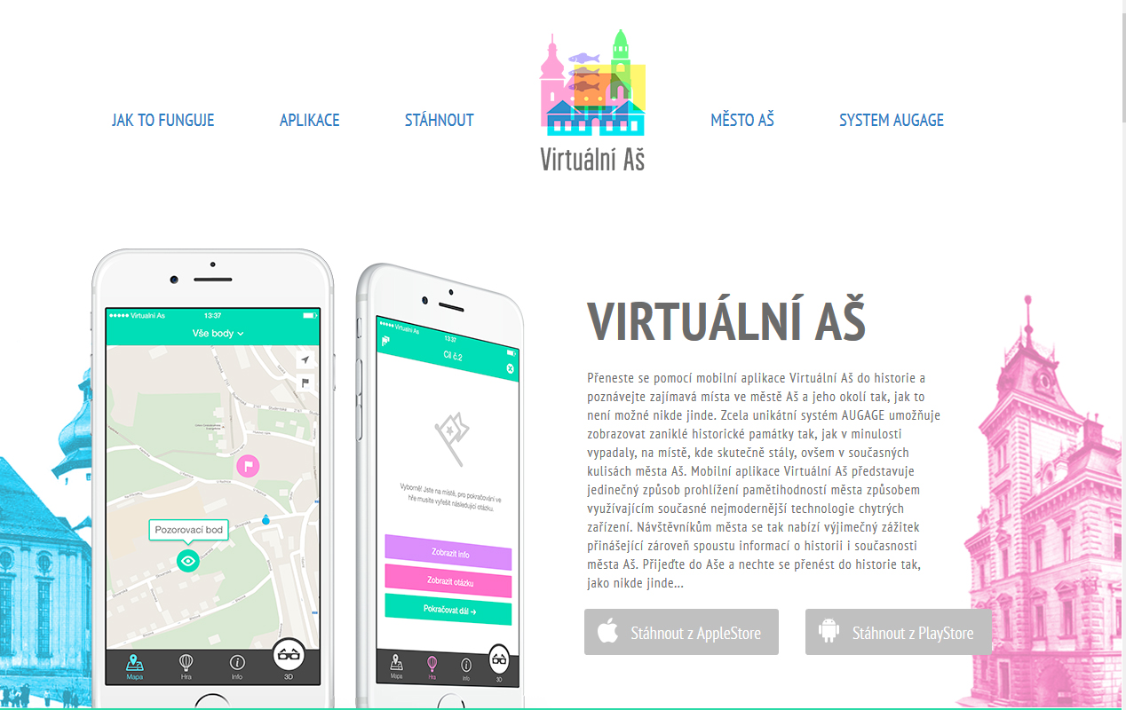 „Jako architekti jsme přemýšleli, jak návštěvníkům Aše prezentovat bohatou historii města, z níž se do dnešního dne bohužel mnoho nezachovalo. Vytvořili jsme proto unikátní systém Augage, který umožňuje pozorování 3D objektů na displeji mobilního zařízení v reálném čase. V praxi to znamená, že přijdete na místo, kde původně historický objekt stál, namíříte na něj zařízení a objekt se na displeji objeví tak, jak původně vypadal,“ vysvětlil jeden z autorů projektu Petr Kostner.