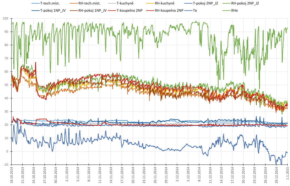 relativní vlhkosti vzduchu z 80 na 50 %. Při reálném užívání domu