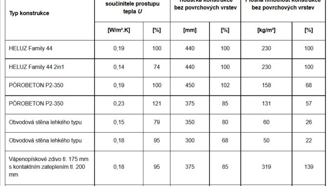 HELUZ, které mají plošnou hmotnost cca 370 kg/m². V tabulce 2 je uvedeno