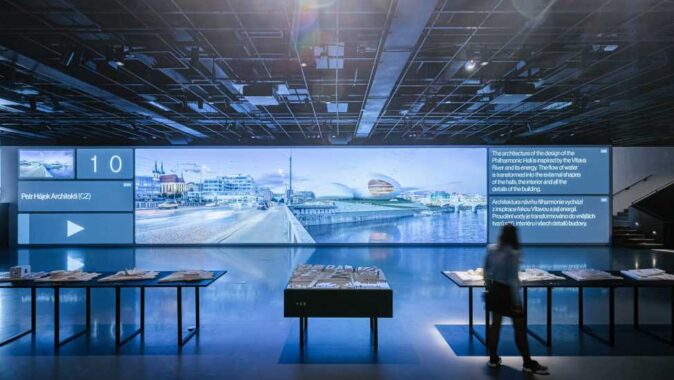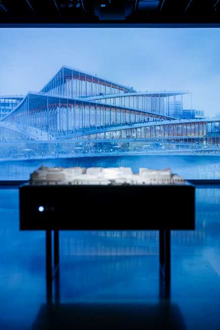 Architekti z BIGu pojali koncertní síň pro Prahu jako bohatý kulturní prostor uvnitř i venku. Trojici hudebních sálů doplní kvalitní zázemí pro orchestr, kreativní hub Městské knihovny a kavárna. Promenádní zóna u řeky se bude po kaskádě teras rozpínat až na střechu, která nabídne i restauraci a nové vyhlídkové místo pro pozorování slavných pražských věží. Chystanou budovu veřejnost zná hlavně díky vizualizacím se zamlženou Vltavou. Návštěvníci se tak mohou seznámit s širším kontextem projektu a s celým příběhem návrhu ateliéru BIG, který se zasloužil o jednomyslné vítězství. Tomu patří Bílý sál, kde jsou k dispozici technická schémata, výkresy a modely nebo rozhovor s Bjarkem Ingelsem. Na své si přijdou také děti, pro které je připravena LEGO stavebnice, ze které si mohou navrhnout svoji vlastní filharmonii.