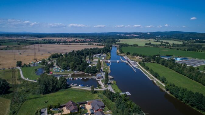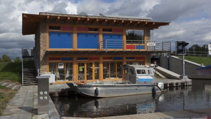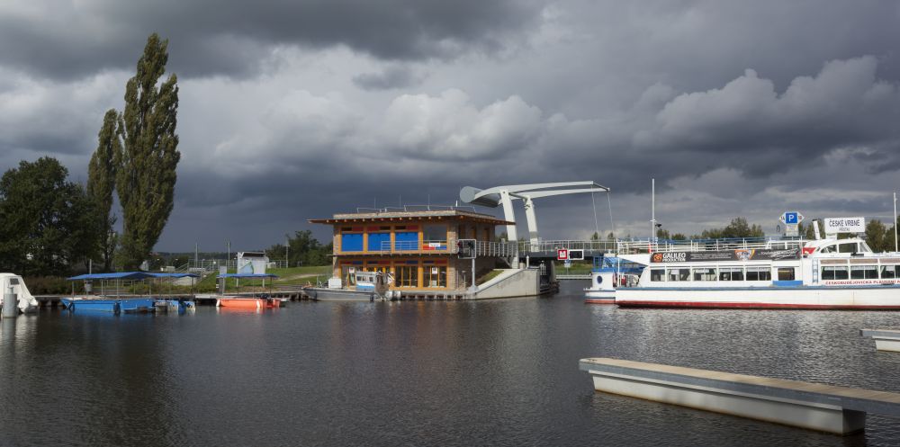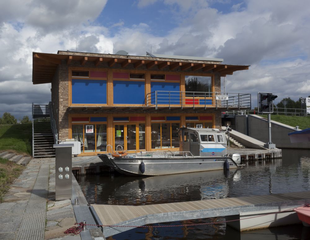 Myšlenku splavnění řeky Vltavy jsme v Atelieru 8000 začali formovat před více než deseti lety. Vizí bylo projektovat splavnění Vltavy dle jednotné typologie. Navrhli jsme designové provedení pro vodní mobiliář – zábradlí, stožárová světla, oplocení, prvky komunikačního zařízení a technického vybavení marin, prvky dopravní komunikace. Architektonické řešení námi navržených staveb tedy má jednotný koncept, konkrétně v případě projektování velínů.