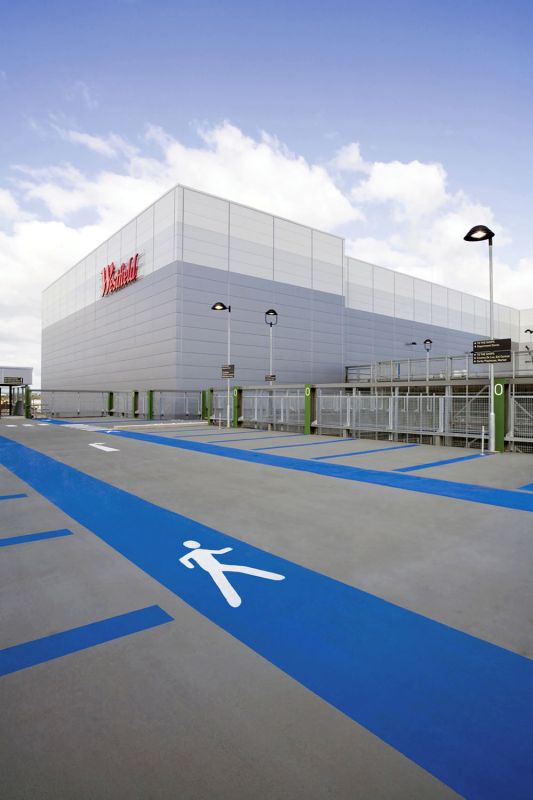 Nezbytnou součástí je dopravní značení na podlaze provedené v kontrastní bílé nebo žluté barvě s reflexními částicemi. Toto značení se využije i při identifikaci parkovacích stání, vyhrazeného parkování nebo navigačního uspořádání. Zřetelné barvy a široce otevřené prostory bez spár, dilatačních polí, přerušení podlah odrážejí při parkování rozlehlou atmosféru nákupního centra, reprezentativní charakter budovy a moderní životní styl. Systémy Deckshield zajišťují působivou a efektivní úpravu podlahy po dlouhou dobu i při náročném způsobu čištění.