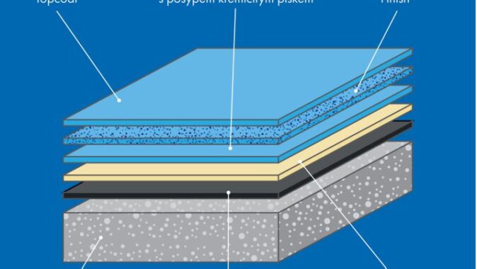 K tomuto účelu se používají speciální systémové nátěry, jmenujme např. Deckshield britské podlahové ikony Flowcrete, jež dokážou vyostřit odraz světla, zvýšit bezpečnost na nájezdových rampách a chodnících a zároveň umí zabránit pronikání vody jak do konstrukce podlahy, tak i do celé budovy.