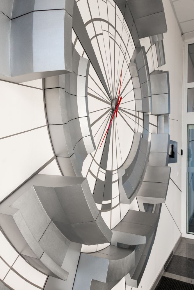 Vo verejnej časti sú nainštalované veľké nástenné hodiny a sedenie. Ako plynie