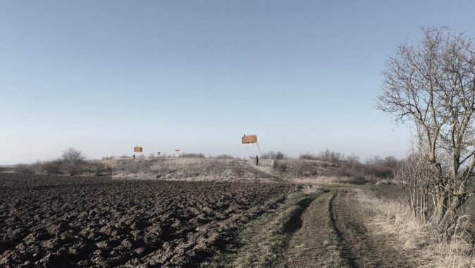 Místo, na kterém v Nebušicích postaví první vyhlídku, se nachází na cyklotrase vedoucí ze Šárky dál do Středočeského kraje. Na výšinu nad obcí vede stará polní cesta, patrná je podle nově vysazených alejí. Tam, kde bylo kdysi rozcestí, je prozatím umístěna informační tabule oznamující odpočinkové místo s výhledem na Nebušice. Takové bylo rámcové zadání pro 15 studentů ateliéru Seho–Poláček na začátku semestru. Za dva týdny připravili každý vlastní koncept, jeden projekt pak vybrali k realizaci.