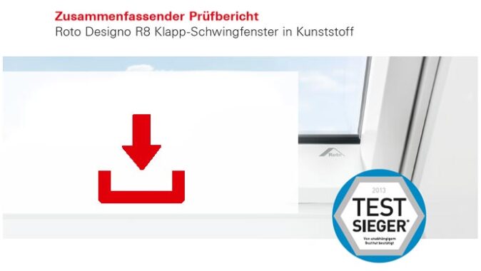 Souhrnnou zprávu k testu výklopného/kyvného střešního okna Roto Designo R8 v plastovém provedení si můžete stáhnout ZDE.