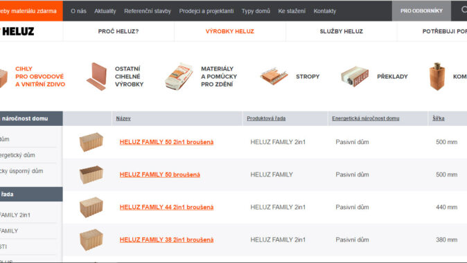 rozcestník na jednotlivé typy produktů. HELUZ si však kromě špičkových