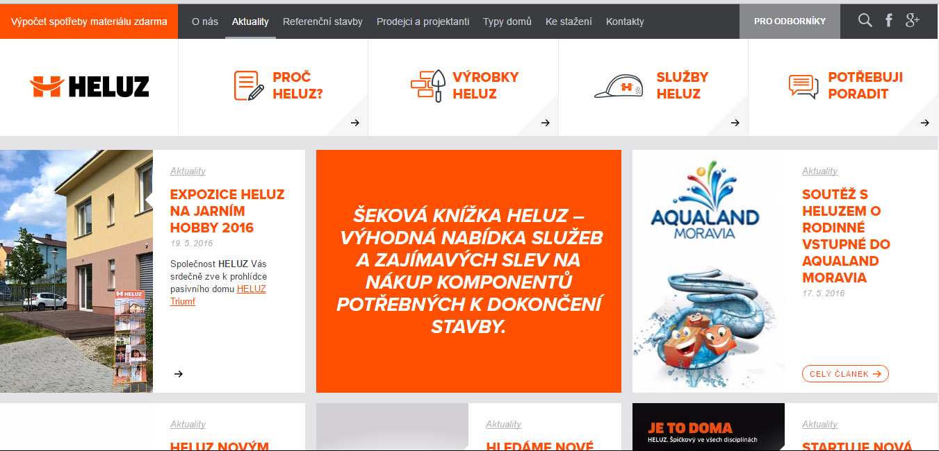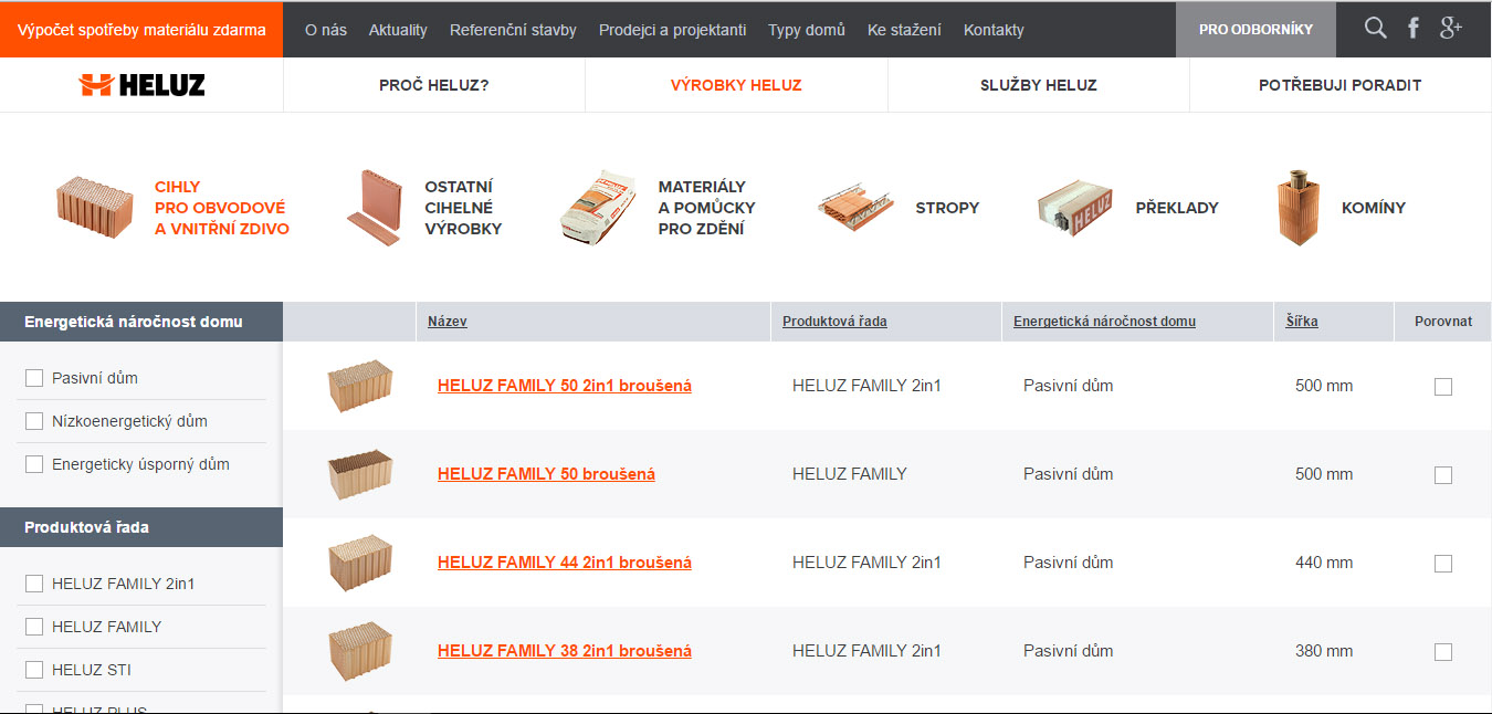 rozcestník na jednotlivé typy produktů. HELUZ si však kromě špičkových