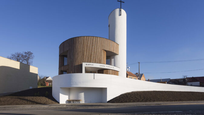 Porota osobností udělila cenu kapli sv. Jana Pavla II. v Bukovanech přihlášené do kategorie Novostavba nebytového objektu (obr. 6).