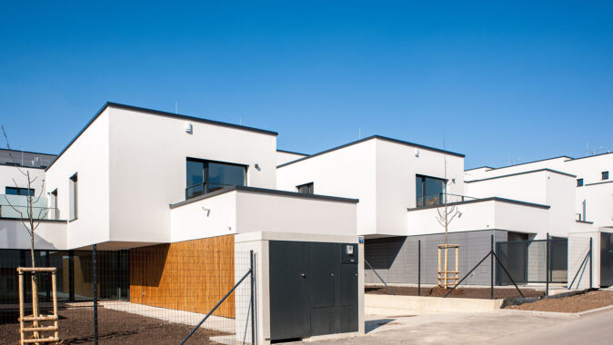 Soubor rodinných domů řešených na principu low-rise/high-density představuje příklad hromadně pořízeného individuálního bydlení spojujícího výhody obou systémů a splňujícího nároky náročnější městské klientely.