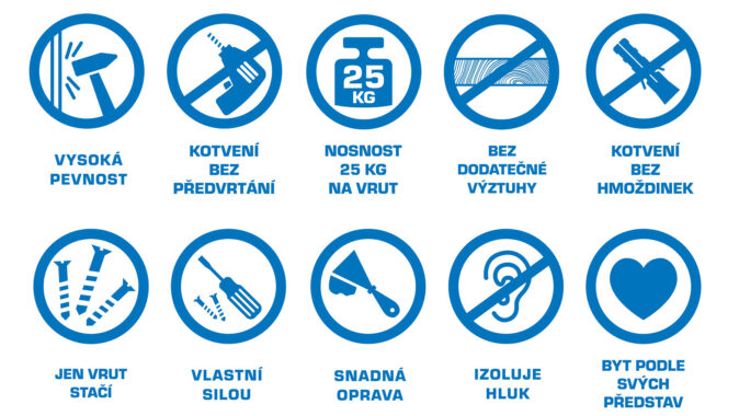 flexibilitu při zařizování bytu. Umístění různých předmětů na stěny lze řešit