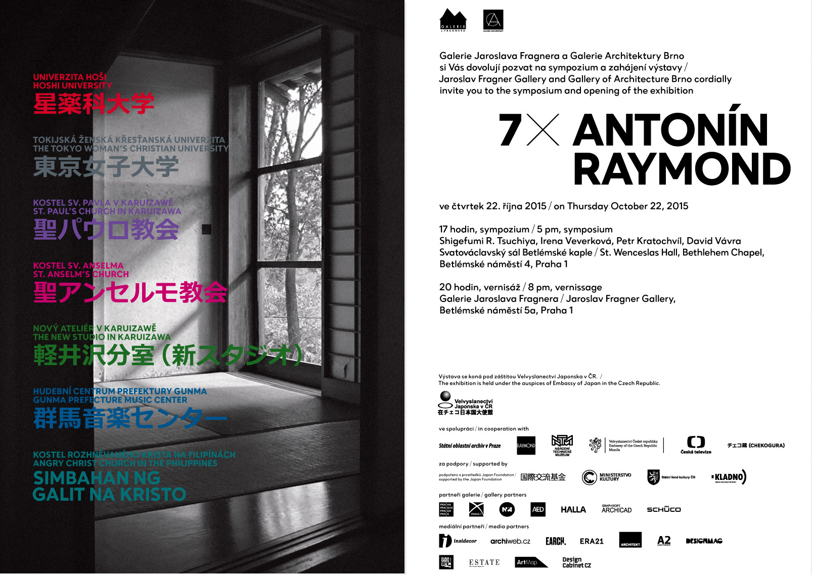 Výstavu Galerie Jaroslava Fragnera připravuje ve spolupráci s Galerií Architektury Brno. Součástí výstavy bude v den vernisáže sympozium ve Svatováclavském sále Betlemské kaple od 17 hodin.