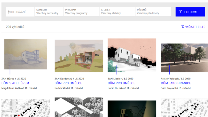 a klíčovým slovům se také dají hledat práce a zadání jednotlivých ateliérů,