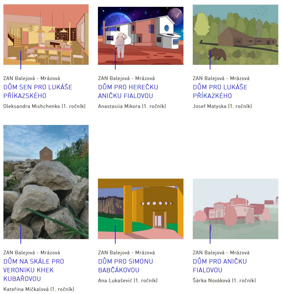 a klíčovým slovům se také dají hledat práce a zadání jednotlivých ateliérů,