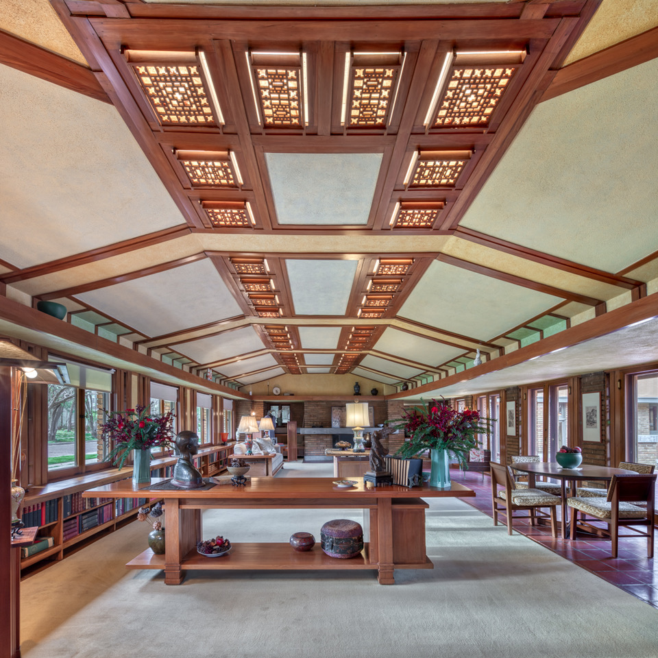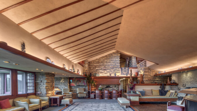 Mezi jeho vrcholná díla patří slavný dům Fallingwater. Při diskusi o tomto projektu a okolní krajině na přednášce pro Taliesin Fellowship Wright poznamenal: „Fallingwater je velkým darem, jedním z největších darů, které lze zde na Zemi zažít. Myslím, že se dosud nic nevyrovná tomu souladu a vyjádření principu naprostého poklidu. Jsme v náručí lesa a potoku – všechny prvky struktury se spojují tak tiše, že opravdu neslyšíte žádný hluk; jen hudbu potoka. Naslouchat Fallingwateru je jako naslouchat tichu krajiny.“