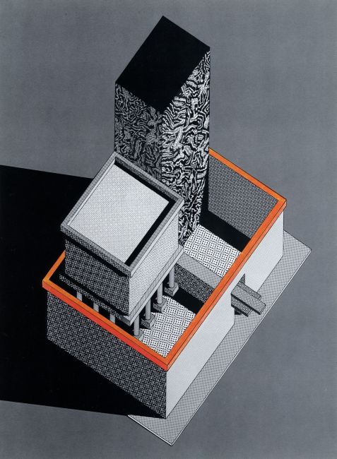 Další hlavní postava skupiny Memphis, designérka Nathalie Du Pasquier využívala myšlenky skupiny v sofistikovaných návrzích vzorovaných textilií a interiérovém designu. Výstava představuje její kresby i skicy Michaela Gravese, amerického architekta, který byl ke skupině volně přidružen.