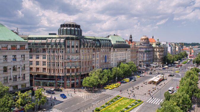 V roce 1915 vznikl podle projektu významného architekta Emila Králíčka komplex tří multifunkčních domů, které dnes tvoří nároží Václavského náměstí a Štěpánské ulice. Podle odborníků dnes patří mezi nejlepší architektonická díla stavební společnosti Matěje Blechy – Králíček totiž projektoval pod hlavičkou této stavební firmy, a proto dlouho trvalo, než mu byly připsány jeho realizace – buď se uváděl autor neznámý anebo byla jeho tvorba připisována jiným architektům. O sochařskou výzdobu se postarali tři významní umělci své doby, Karel Pavlík, Antonín Waigant a Antonín Odehnal.