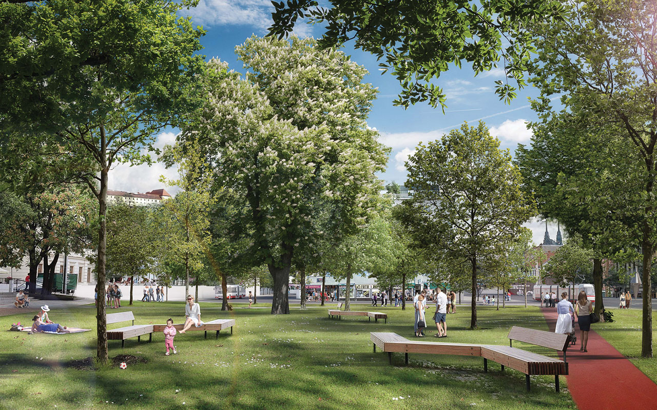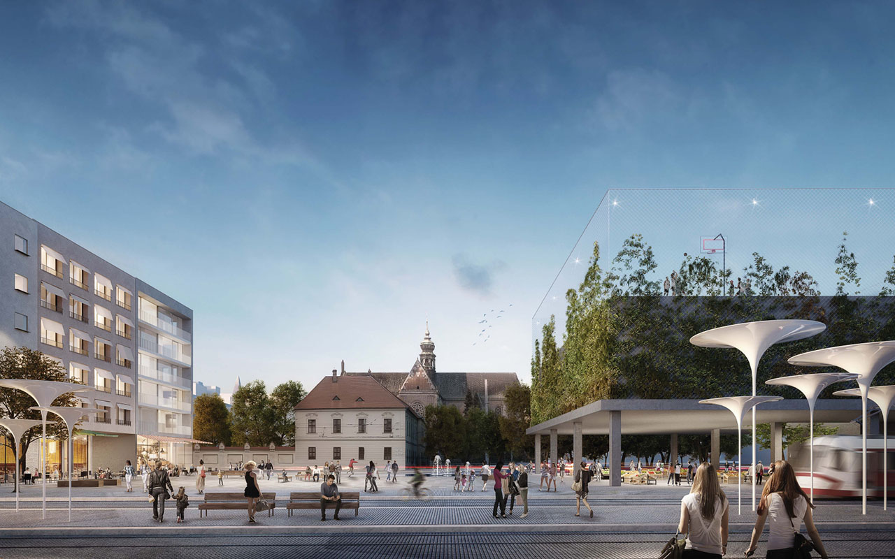 prostor sloužit jako skutečné náměstí. Soutěžící vycházeli z dopravní